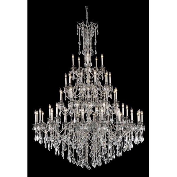 9255 Rosalia Collection Large Hanging Fixture D64in H84in Lt:55 Pewter Finish (Royal Cut Crystals). The Rosalia Collection is a stunning and decadent example of the design period of the Austro-Hungarian empire. The bold strength of the four brass casting f