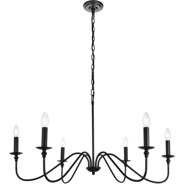 Elegant Lighting LD5006D36MB 19 x 36 in. Rohan 6 Light Matte Black Chandelier (Discontinued)