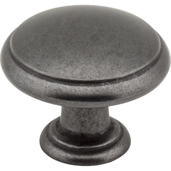 Add a touch of comfort to your space with this cozy 1-3/16" diameter Gun Metal ringed mushroom knob from Gatsby. This vintage-inspired collection from Elements harkens back to a bygone era, and features multiple knob and pull shapes in four additional classic finishes. Any choice is sure to complement any cabinet style. Each item is individually wrapped to protect the item from damage. Attachment hardware is included.