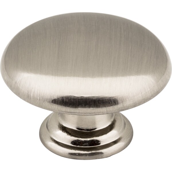 Add a touch of comfort to your space with this cozy 1-3/16" diameter Satin Nickel mushroom knob from Gatsby. This vintage-inspired collection from Elements harkens back to a bygone era, and features multiple knob and pull shapes in four additional classic finishes. Any choice is sure to complement any cabinet style. Each item is individually wrapped to protect the item from damage. Attachment hardware is included.