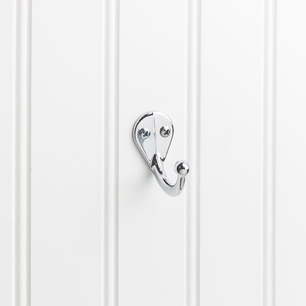 Add a touch of effortless elegance to your bathroom with this traditional single prong ball end Polished Chrome wall hook from Elements. The efficient design of this hook is best for hanging towels, keys, or keeping things organized in your closet. This hook is available in 3 beautiful finishes. Each hook is weight tested to hold up to 35 pounds and individually packaged to prevent damage. Packaging includes mounting screws and installation instructions.