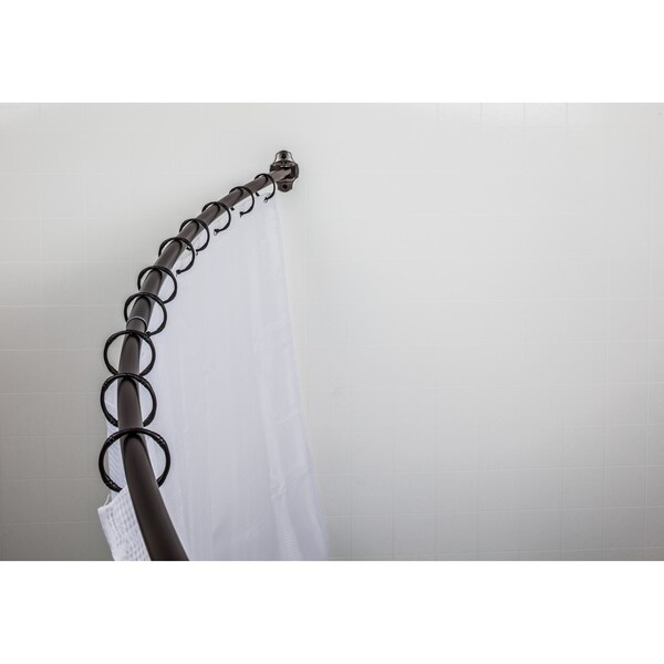 Add extra elbow room and maximize your space with this Brushed Oil Rubbed Bronze wall mounted curved shower rod. Designed with versatility in mind, this expandable shower rod can be adjusted from 56" to 72" and fits a variety of showers and tubs. The simple yet beautiful design blends with a variety of design styles. Solid, all metal construction provides rust resistance. This product is retail packed.