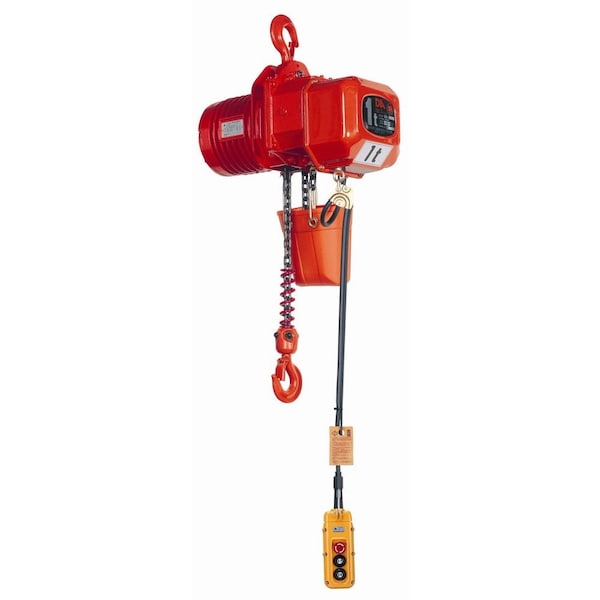 2 ton Electric Chain Hoist - Elephant DB - Two Speed 230/460v Three Phase - 10' Lift, Surface Hardened Highly Durable Load Chain, IP54 Hoist Protection, IP65 NEMA 4X Pendant Protection, Chain Container, 16'-4 in. Power Cord
