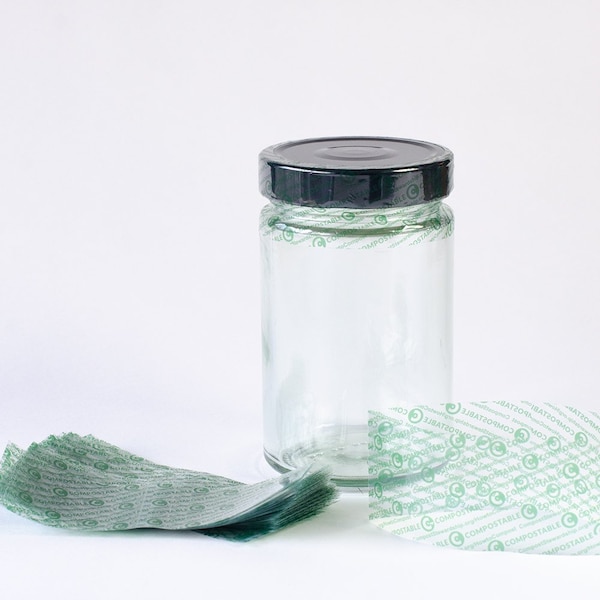 Compostable Perforated Shrink Bands - 118 x 40mm Fits Cap Diameter 2-1/4 in. - 2-7/8 in. - Compostable shrink bands provide a tamper-proof seal while eliminating plastic waste. These shrink bands are perfect for securing caps, lids, and closures, offering a tamper-evident solution for sauce jars, regular-mouth mason jars, condiments, lotion bottles, and more. Designed to fit around the cap and neck of your product, they shrink easily with heat application. The perforated design ensures effortless removal. With a 2 mil thickness, these bands are made from renewable materials and are pre-printed with the compost symbol for easy identification. They are compatible with heat guns, steam flow/tunnels, and infrared systems. Meeting ASTM D6400, EN13432, and ISO17088 composting standards for industrial composting environments, these shrink bands provide an eco-friendly and sustainable packaging solution.