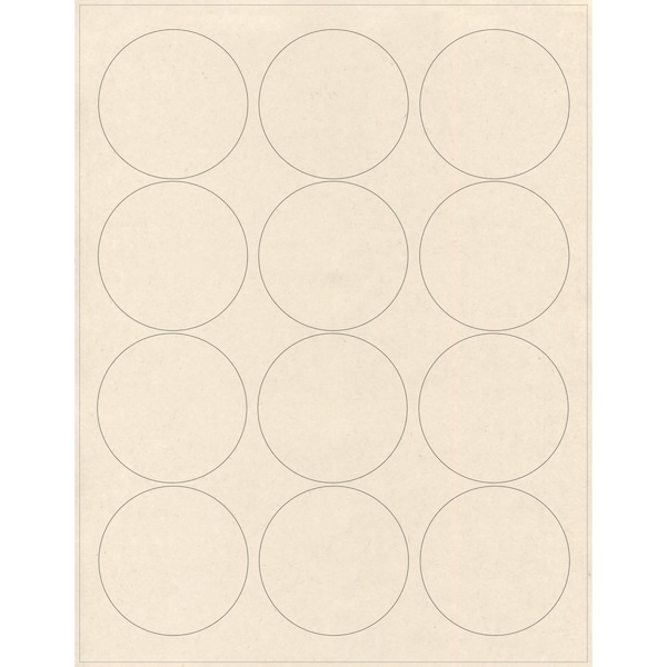 2.5 in. Compostable Round Labels, Blank Layflat Sheets, Sugarcane, 25PK