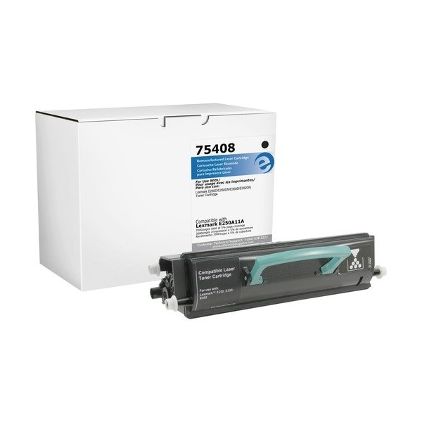 Premium, remanufactured toner cartridge is designed for use with Lexmark E250D, E350D and E352D/N. Cartridge yields approximately 3,500 pages.