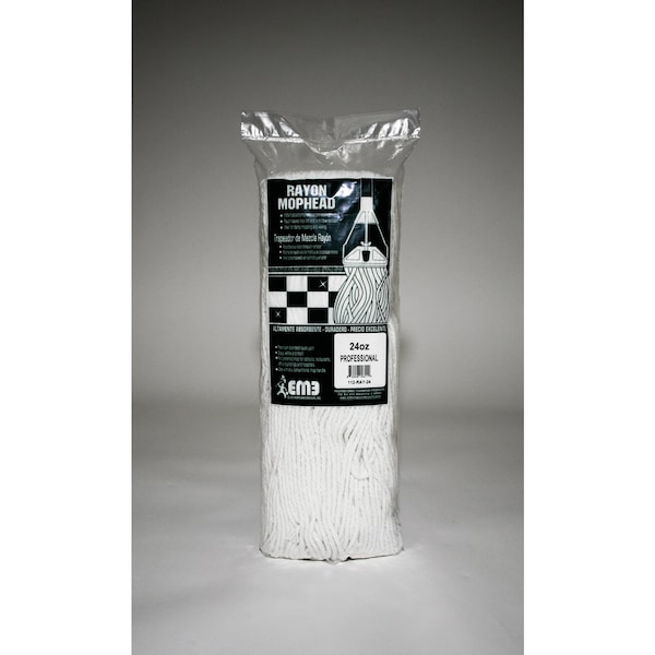 24 ounce professional rayon mop head. 1 inch narrow band cut end construction. Mop use in kitchens, bathrooms, restaurants, hospitals. Applying waxing for instant absorbency. Hang to dry. Not machine washable