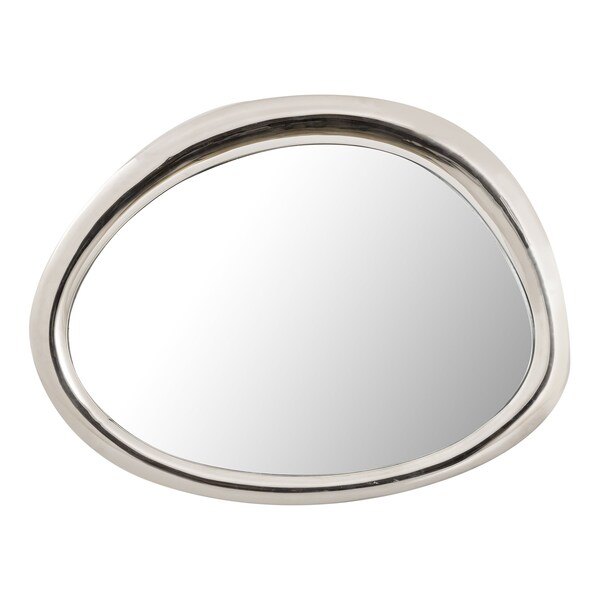 The Hendricks Mirror has an organic, rounded shape in brass finished metal. The rounded curves of the frame evoke the midcentury era, making this mirror versatile and stylish in any room setting.