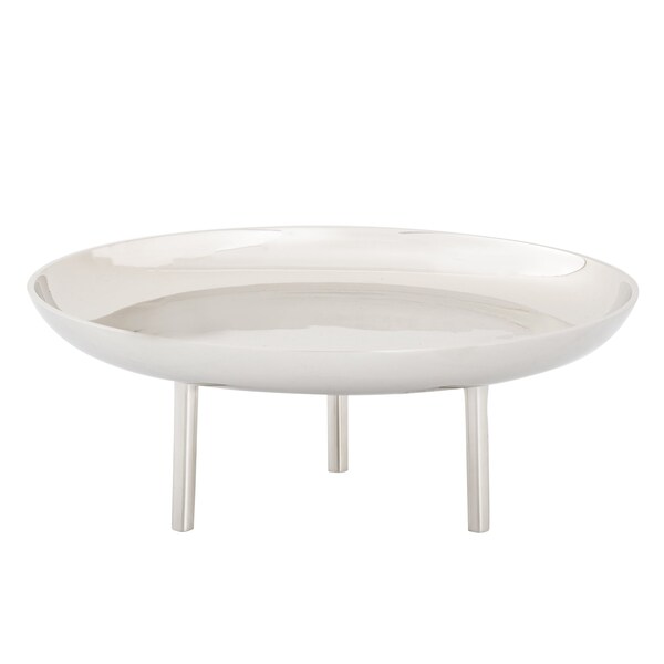 The Kiser Plate, elevated on four metal legs with a gently beveled rim and polished finish, is the perfect display piece for an entertaining spread. Its oversized scale brings drama and style to your dining area.