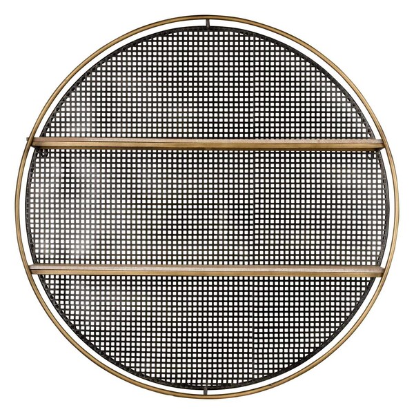 The Rawmarsh wall unit is perfect for hanging displays of plants or small curios. This circular black and gold design is framed in natural wood and backed with mesh metalwork. Its simple form brings a striking contemporary accent to a modern space.