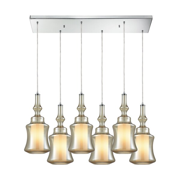 Alora 6-Lght Rectangular Pndnt Chrm w/Champagne-plated & Opal Wht Glss (Discontinued)