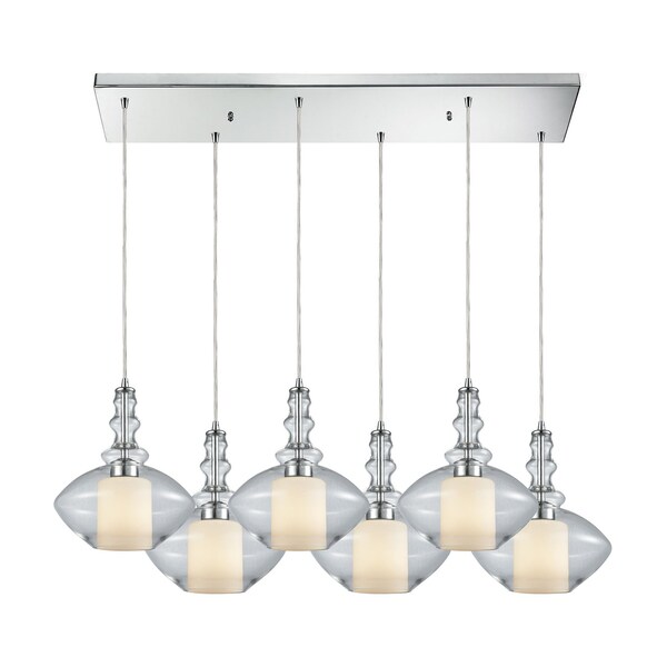 Alora 6-Lght Rectangular Pndnt Chrome w/Clr and Opal Wht Glass (Discontinued)