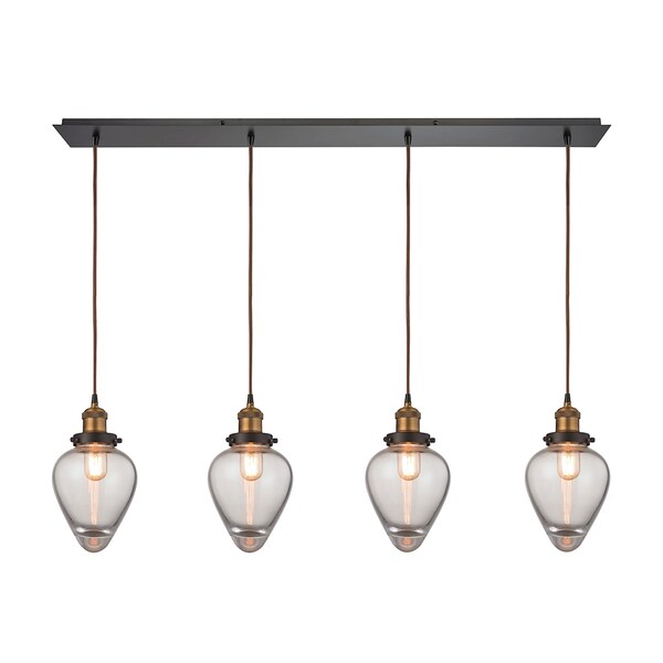 Bartram 4-Lght Linear Pndnt Brss and Oiled Brnz w/Clr Optic Glss (Discontinued)