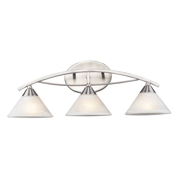 Elysburg 3-Light Vanity Lamp in Satin Nickel with White Swirl Glass (Discontinued)
