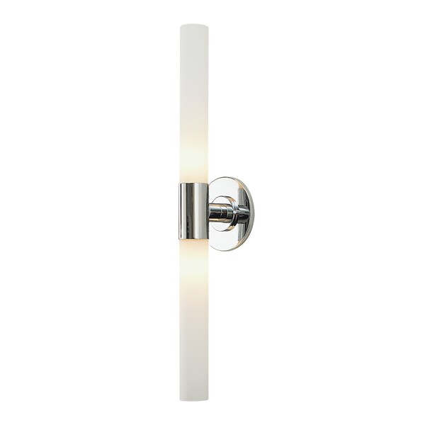 Long Cylinder 2-Light Vanity Lamp in Chrome with White Opal Glass (Discontinued)