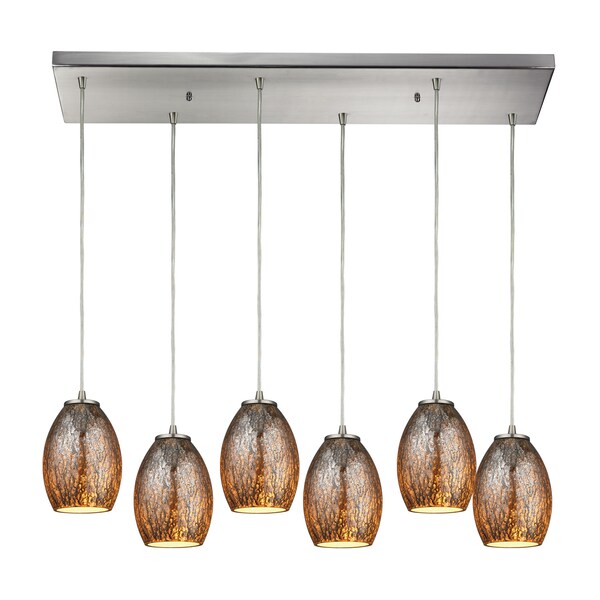 Venture 6-Lght Rectangular Pndnt SatNickel w/Amber Crackle Glass (Discontinued)