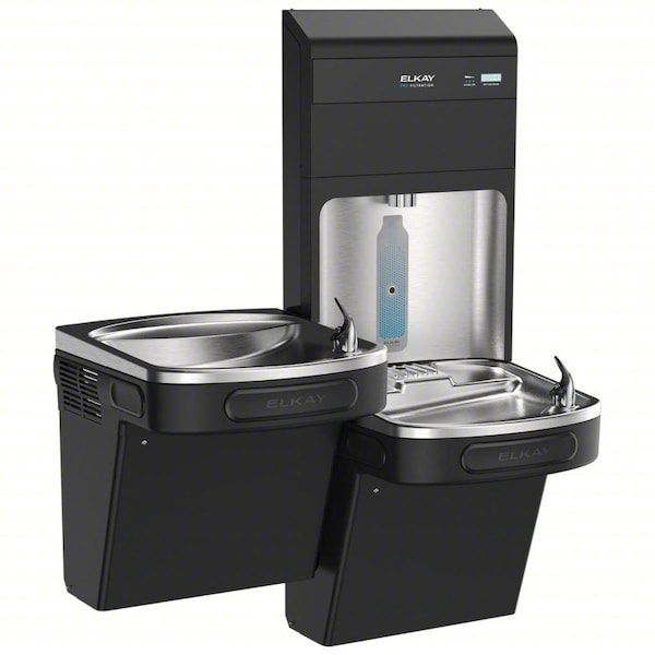 Bottle Filling Station, ADA Compliant ADA Compliant, Dispenser Actuation Push Button, Sensor, Mounting Location Wall Mount, Cooling Capacity 8 gph, Housing Color Black, Filter Status Indicator Filter Status Indicator Included, Housing Finish Stainless, Includes Water Filter Water Filter Included, Overall Height 46 7/8 in, Overall Depth 36 3/4 in, Refrigeration Refrigerated