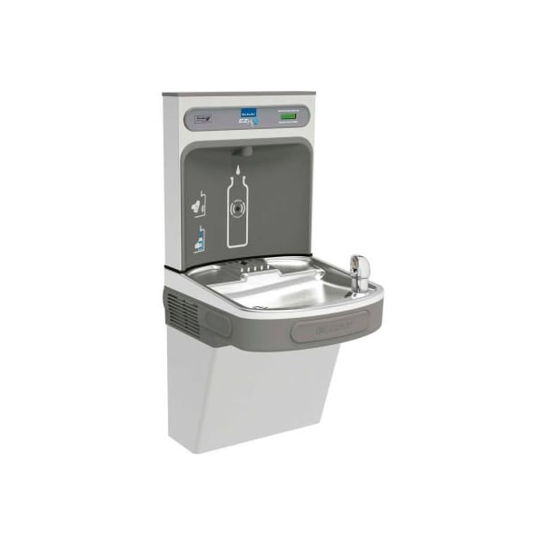 Elkay ezs8wsvrsk ezh2o water bottle refilling station w/single ada ez cooler, refrig, vr bubbler, ss the elkay ezh2o bottle filling station delivers a clean quick water bottle fill and enhances sustainability by minimizing dependency on disposable plastic bottles. Complete cooler and bottle filling station in a consolidated space saving ada compliant design. Bottle filler features sanitary no-touch sensor activation with automatic 20-second shut-off timer. features: touchless, sensor activation bottle filler designed for easy use; easy-to-operate push-bar activation bubbler. fill rate is 1.1 gpm. green ticker informs user of number of 20 oz. Plastic water bottles saved from waste. laminar flow provides clean fill with minimal splash. silver ion antimicrobial protection on key plastic components to inhibit the growth of mold and mildew. real drain system eliminates standing water. vandal-resistant bubblers feature chrome-plated integral hood guard to prevent contamination from other users, airborne deposits and tampering. rated for indoor use.