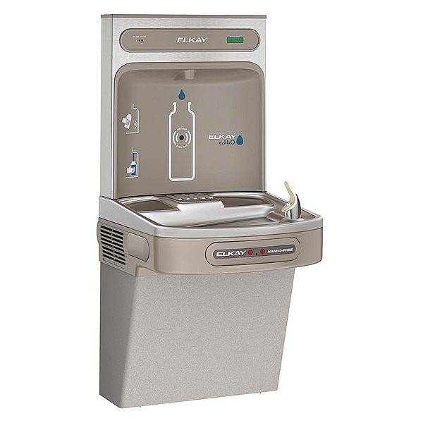 The Elkay EZH2O Bottle Filling Station delivers a clean quick water bottle fill and enhances sustainability by minimizing our dependency on disposable plastic bottles. Complete hands-free cooler and bottle filling station in a consolidated space saving ADA compliant design. NEW Versatile Bi-Level cooler design allows for standard cooler installation of high-left/low-right or the alternate reverse cooler installation.