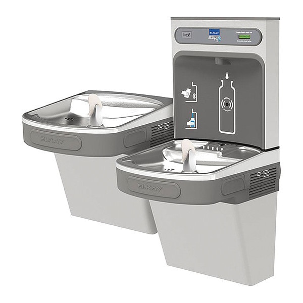 The Elkay EZH2O Bottle Filling Station delivers a clean quick water bottle fill and enhances sustainability by minimizing our dependency on disposable plastic bottles. Complete cooler and bottle filling station in a consolidated space saving ADA compliant design. NEW Versatile Bi-Level cooler design allows for standard cooler installation of high-left/low-right or the alternate reverse cooler installation.