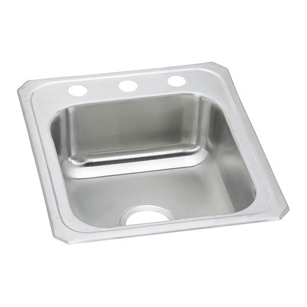 Kitchen Sink, Top Mount Mount, 3 Hole, 14" x 15-3/4", Brushed Satin