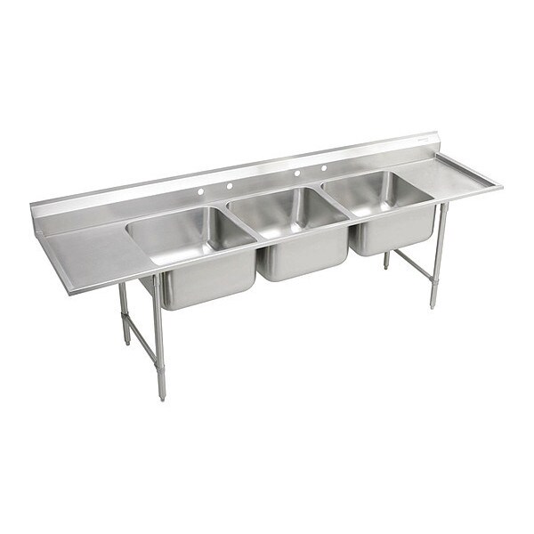 Rigidbilt SS, 3 Compartment Scullery Sink, Floor Mount, 4 Hole, Buffed Satin (Discontinued)