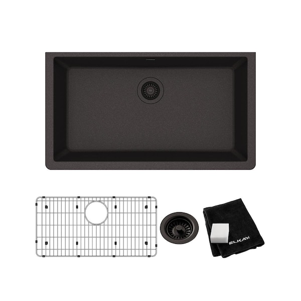 Single Bowl Undermount Sink Kit, 33" X 18-7/16" X 9-7/16", Black