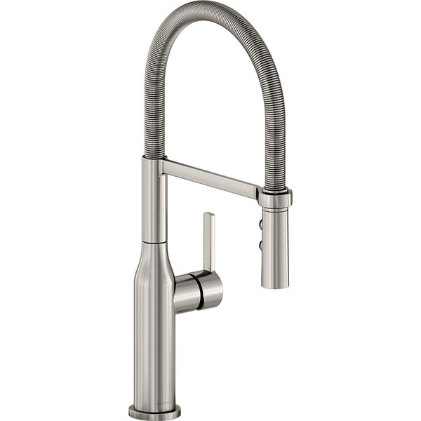 Single Hole Kitchen Faucet with Semi-pro Spout and Forward Only Lever Handle Lustrous Steel