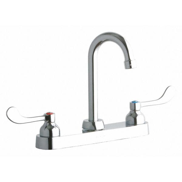 Widespread Faucet, 8" Spout, 6" Handle, Wristblade Handle, 8" Mount, 3 Hole Commercial