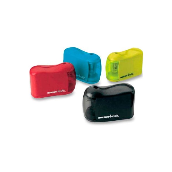 Elmer's exacto buzz pencil sharpener pencil sharpener is small and compact enough to carry in your backpack, purse or briefcase. Razor blade sharpening mechanism produces perfect points on standard wooden pencils. Secure receptacle catches any shavings. The exacto buzz is powered by four aa batteries (sold separately).