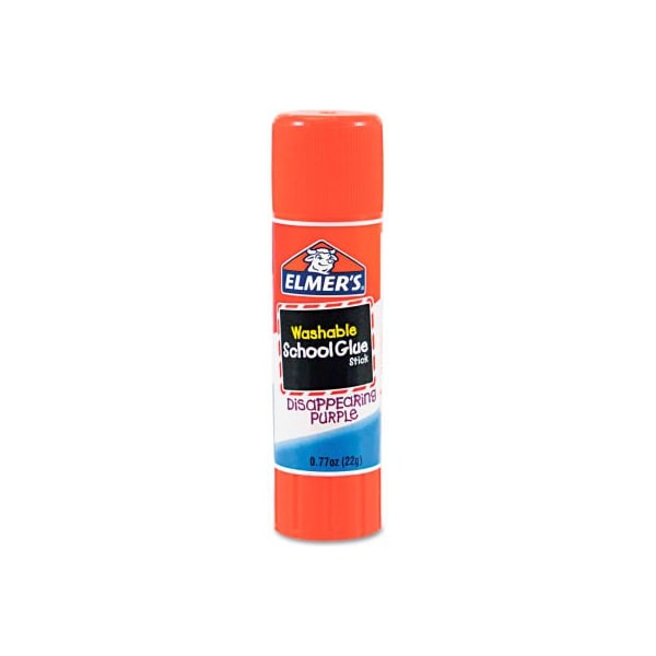 Elmer's washable school glue stick school glue stick goes on purple so you can see just where you're placing it and dries fast, clear and colorless. It is acid-free and photo-safe. Adhesive type: stick; color dried: clear; color on application: purple; washable: yes. larger quantity quotes available. Please call 1-888-978-7759. this product arrives to most customers in 2-3 business days.