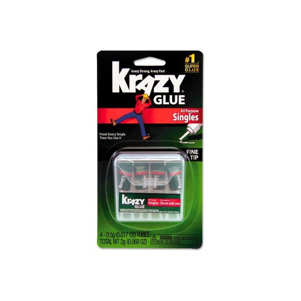 Krazy glue single-use tubes w/storage case, 4/pack single-use applicators have just enough in each tube for one fast fix. Simply twist the self-piercing nozzle to open, then use it and throw away. Convenient storage case keeps kitchen drawers and workshops organized. Dries clear. Adhesive type: liquid; color dried: clear; capacity (volume): 0.07 oz; suggested use: glass; metal; plastics; rubber; wood. larger quantity quotes available. Please call 1-888-978-7759. this product arrives to most customers in 2-3 business days.