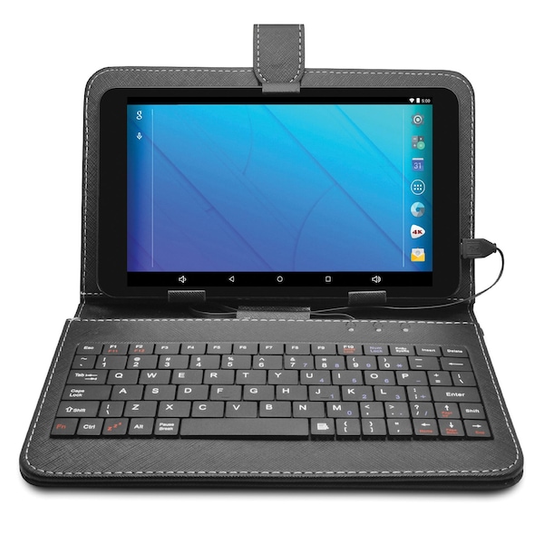 Get high-quality protection for your device with the Ematic 10 In. Universal Tablet Keyboard Case. It features a stylish leatherette design that is compatible with a wide range of 10 inch tablets, including Nexus and Kindle Fire models. This Ematic tablet keyboard folio case safeguards the delicate elements of the device while leaving the important functional aspects such as ports, buttons, and screen unobstructed. It also comes with a handy removable keyboard that includes low-profile responsive keys with all of the standard keyboard functions. Sturdy clips help secure the tablet firmly in place.