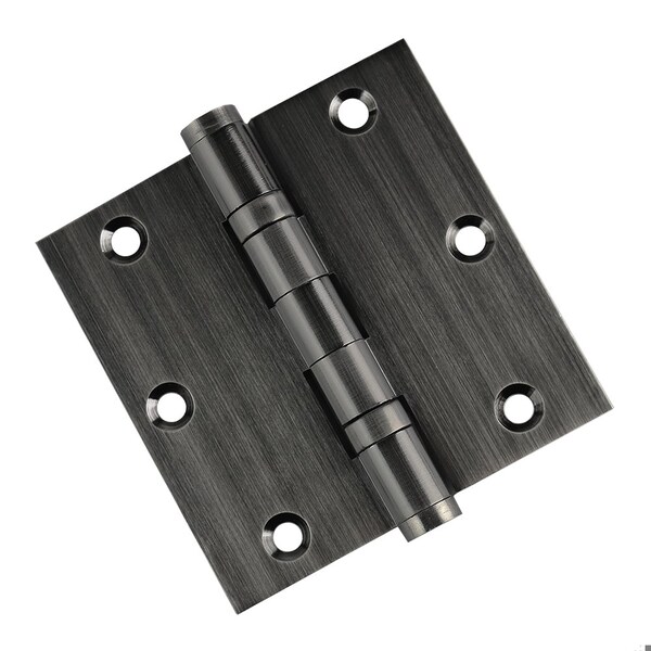 3-1/2 x 3-1/2 Solid Brass Ball Bearing Hinge, Pewter Finish with Flat Tips