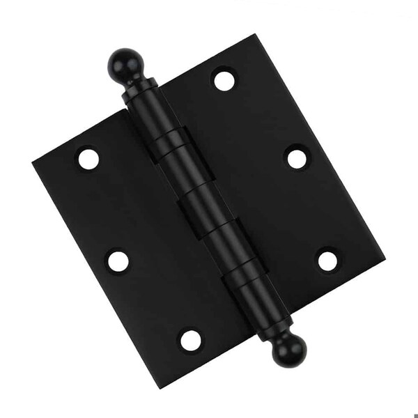 3-1/2 x 3-1/2 Solid Brass Hinge, Flat Black Finish with Ball Tips
