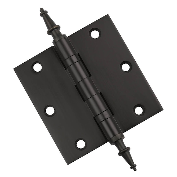 3-1/2 x 3-1/2 Solid Brass Hinge, Oil Rubbed Bronze Finish with Steeple Tips