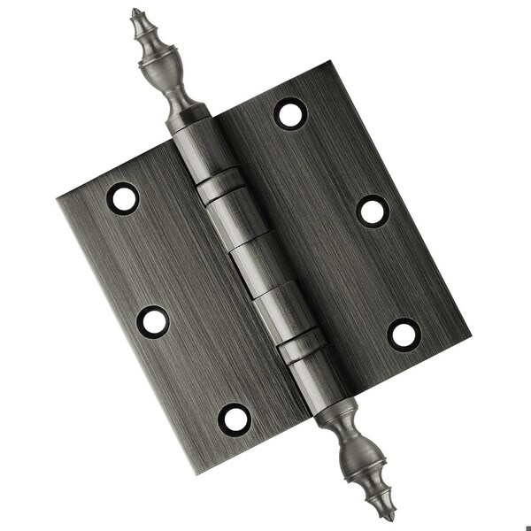 3-1/2 x 3-1/2 Solid Brass Hinge, Pewter Finish with Urn Tips