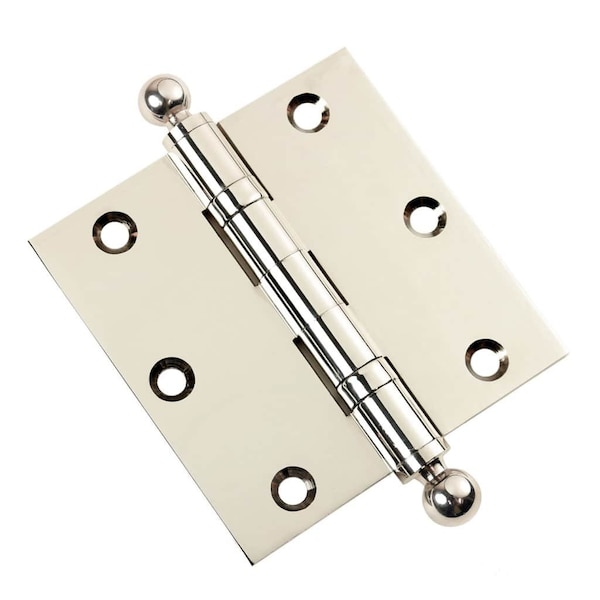 3-1/2 x 3-1/2 Solid Brass Hinge, Polished Nickel Finish with Ball Tips