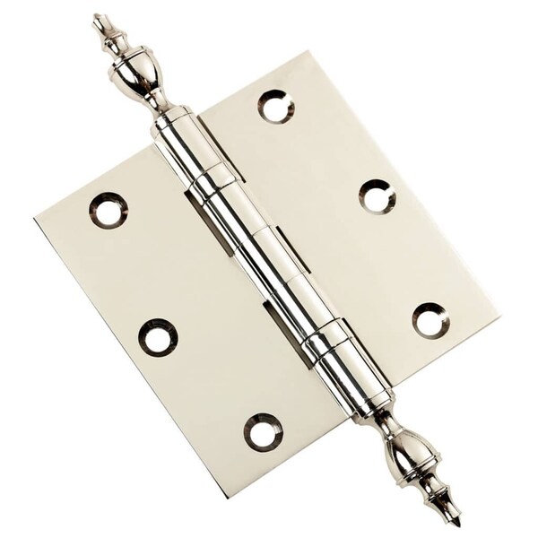 3-1/2 x 3-1/2 Solid Brass Hinge, Polished Nickel Finish with Urn Tips
