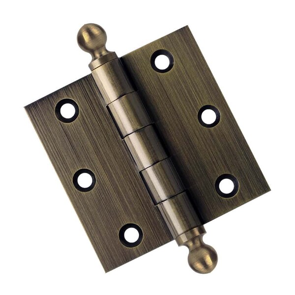 3 x 3 Solid Brass Hinge, Antique Brass Finish with Ball Tips