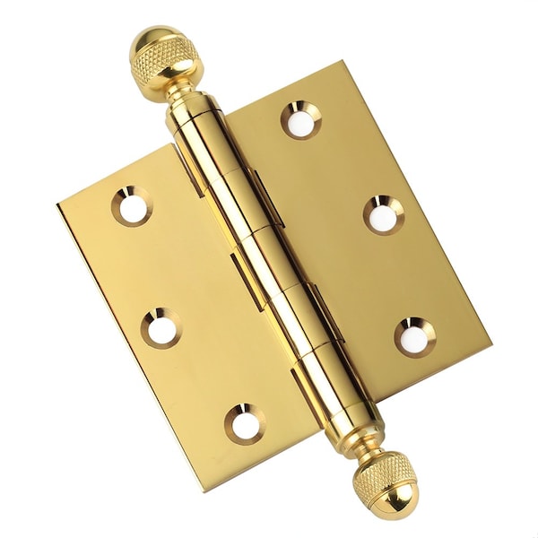 3 x 3 Solid Brass Hinge, Polished Brass Finish with Acorn Tips