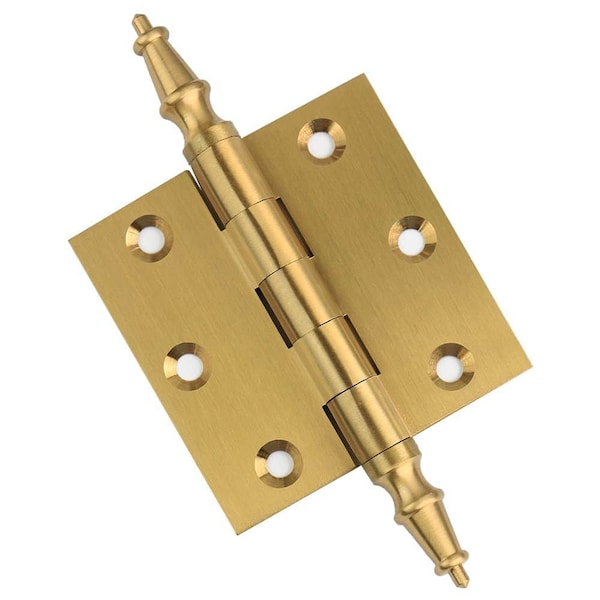 3 x 3 Solid Brass Hinge, Satin Brass Finish with Steeple Tips