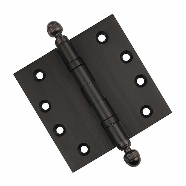 4-1/2 x 4-1/2 Solid Brass Ball Bearing Hinge, Oil Rubbed Bronze Finish Acorn Tips