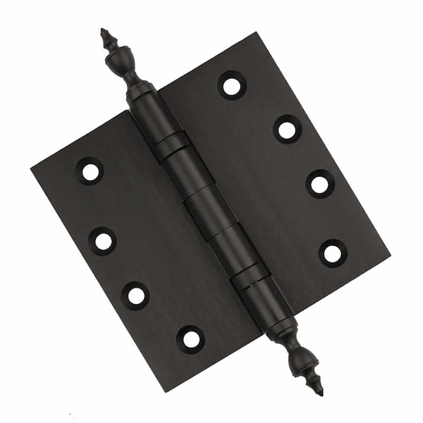 4-1/2 x 4-1/2 Solid Brass Ball Bearing Hinge, Oil Rubbed Bronze Finish Urn Tips