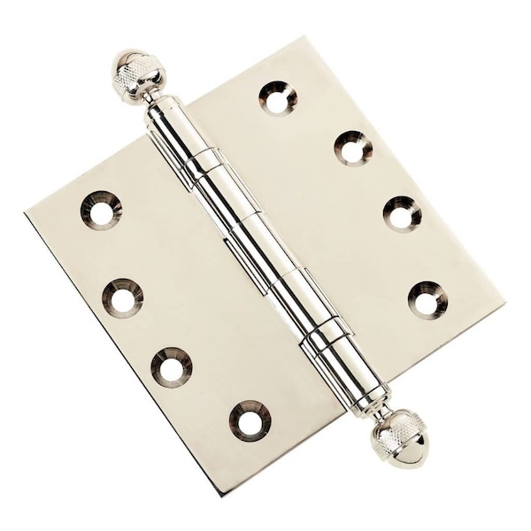 4-1/2 x 4-1/2 Solid Brass Ball Bearing Hinge, Polished Nickel Finish Acorn Tips