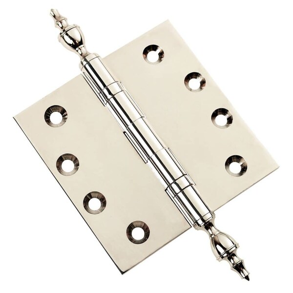 4-1/2 x 4-1/2 Solid Brass Ball Bearing Hinge, Polished Nickel Finish Urn Tips