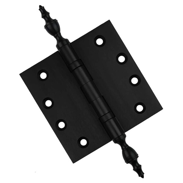 4-1/2 x 4-1/2 Solid Brass Hinge, Flat Black Finish with Urn Tips
