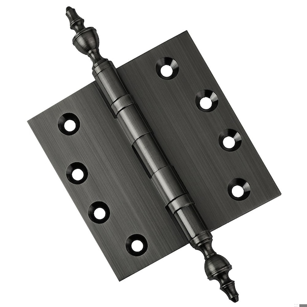 4-1/2 x 4-1/2 Solid Brass Hinge, Pewter Finish with Urn Tips