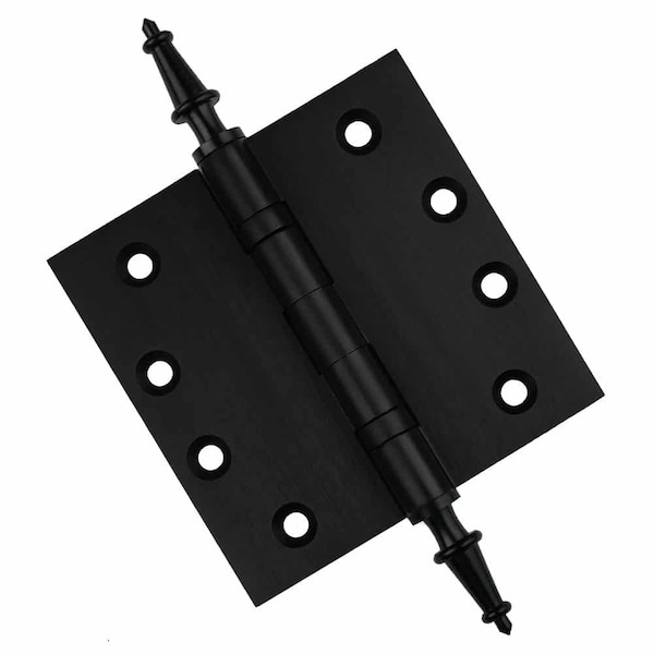 4 x 4 Solid Brass Hinge, Flat Black Finish with Steeple Tips