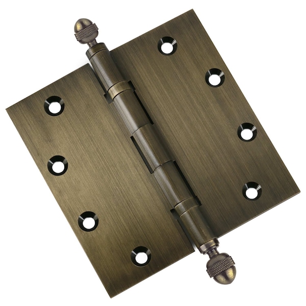 5 x 5 Solid Brass Ball Bearing Hinge, Antique Brass Finish Acorn Tips